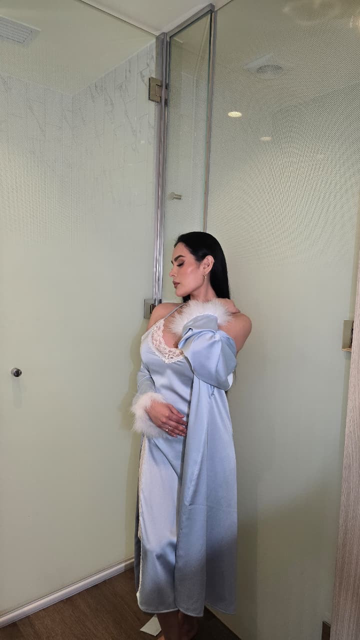 Hecho en seda francesa con encaje de algodón y plumas.